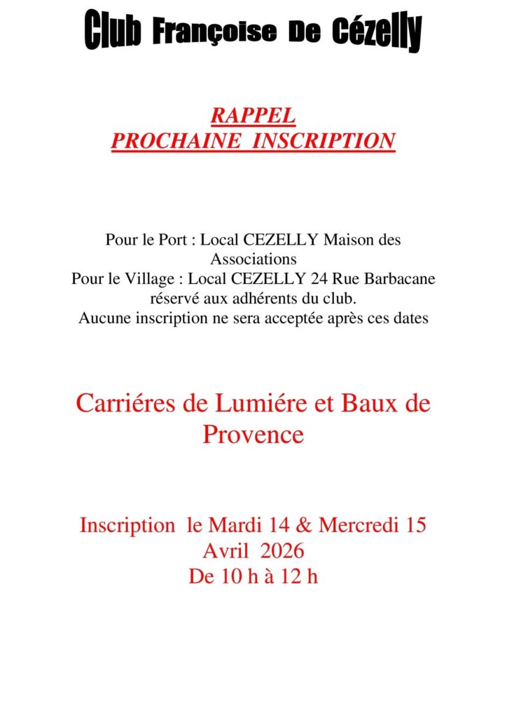 1 Infos / jour la Vie du Club