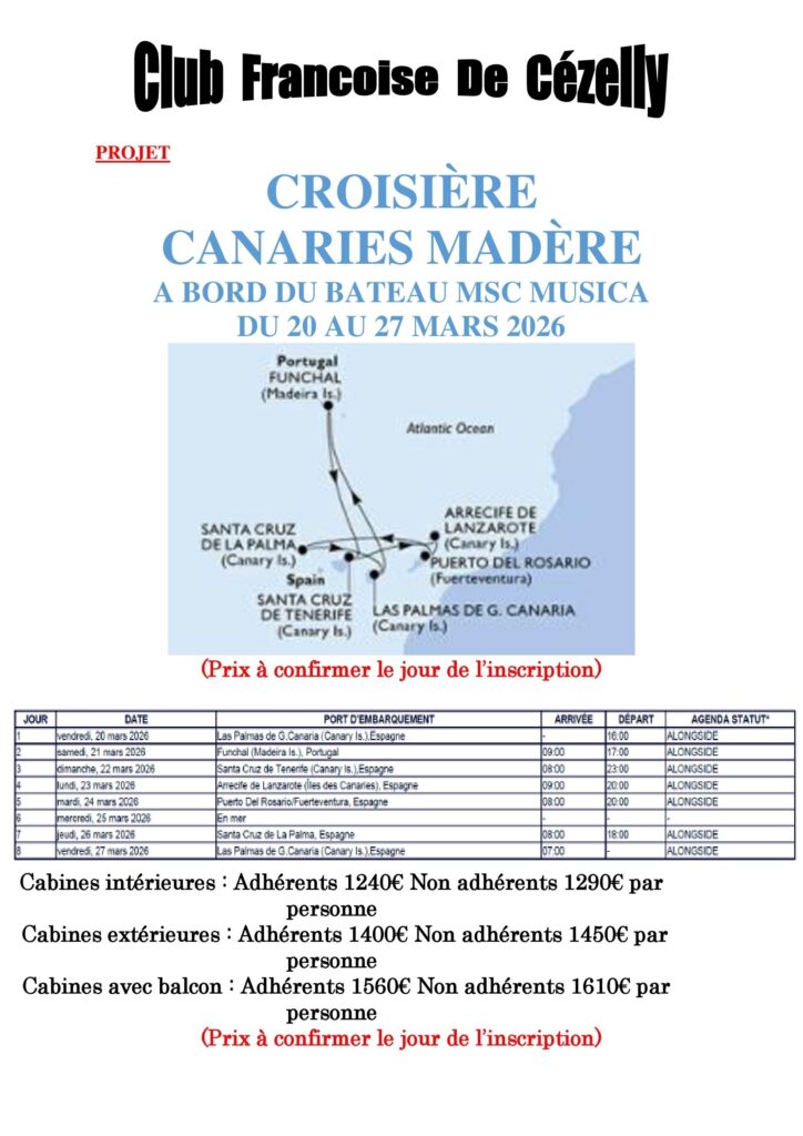 CROISIERE CANARIES MADERE du 20 au 27/03