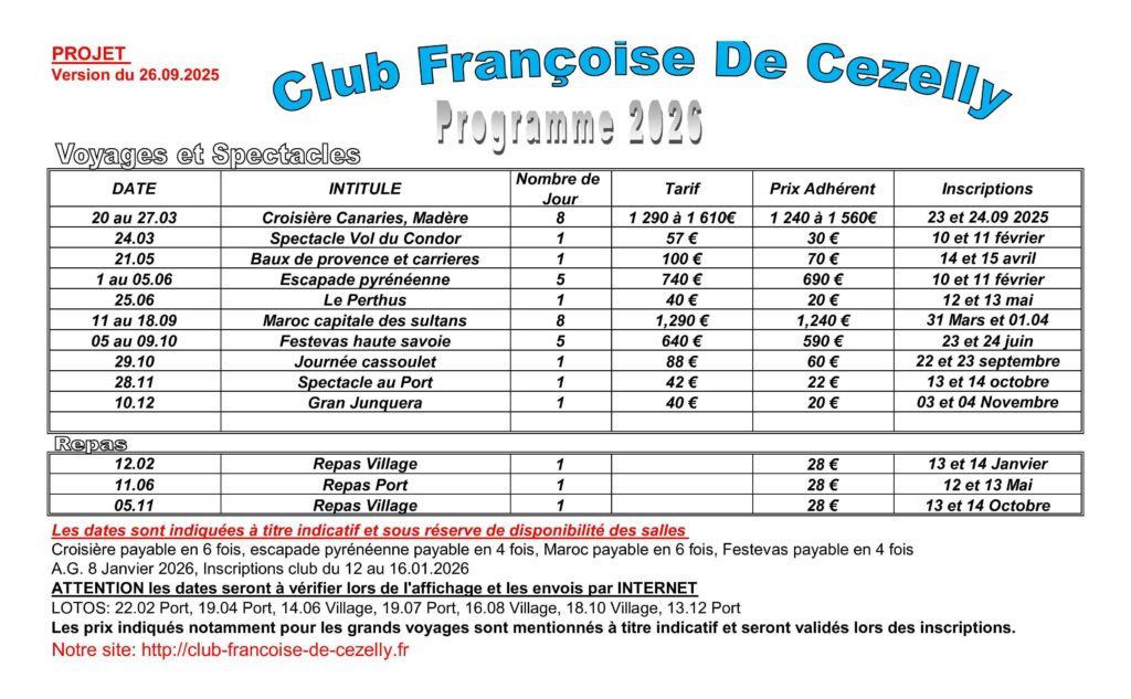 • 1 Infos / jour la Vie du Club